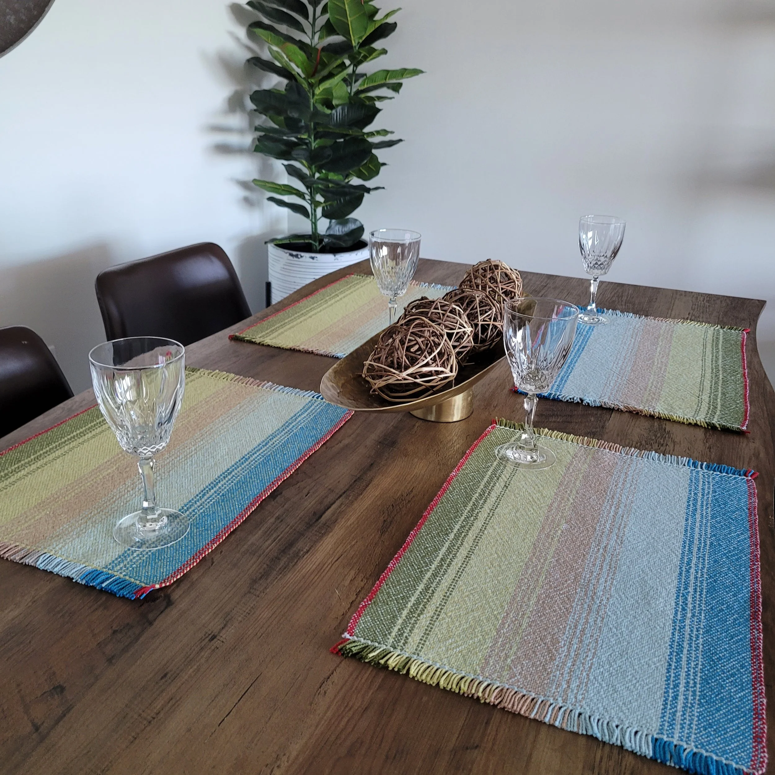After wet finishing and pressing, the placemats should measure about 12 1/2” x 18 1/4” each plus fringe. If you have used Gist Beam, these placemats are completely washable, and mine did not shrink after the first wash.