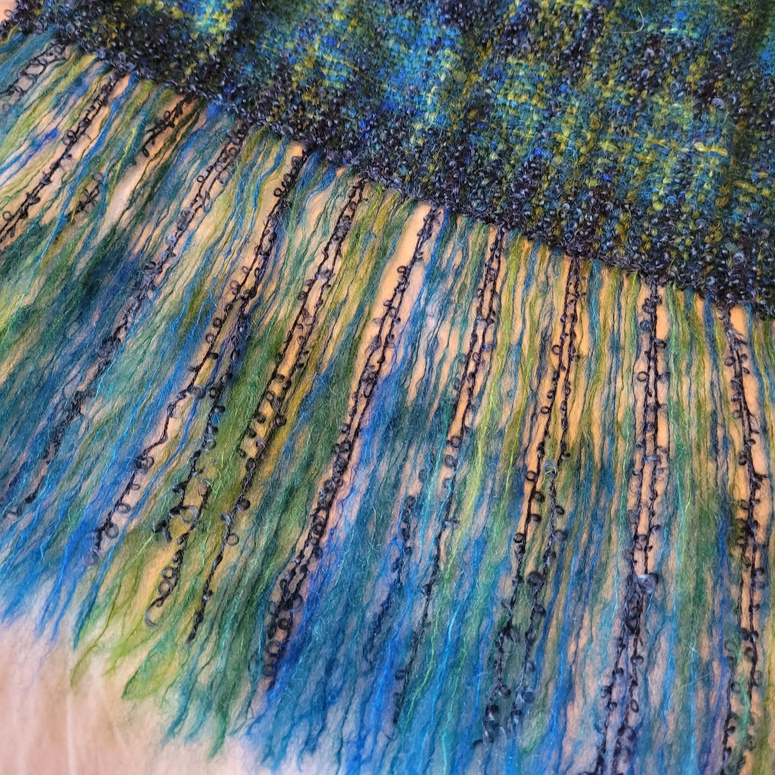 First, use a bigger reed than you think. Remember all that fluff is going to spread. And the fluff will hold everything together, so if the work looks you’re weaving a window screen, it’s ok! Second, prepare yourself mentally. This will be a slow weave. You will need to clear sheds, maybe every single one. Keep the finished project in mind. Have a good audio book downloaded, or a podcast or a binge-worthy show ready to go! I also have a nice cup of tea. (But I always have a nice cup of tea!)